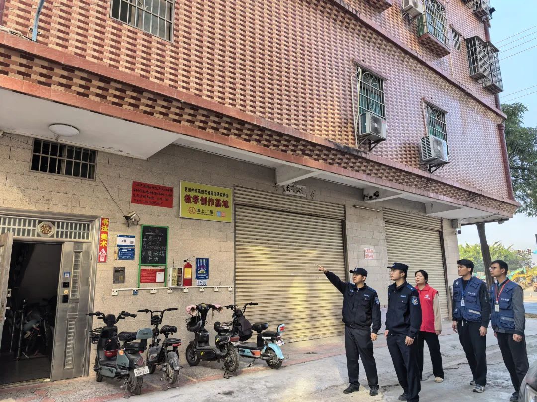 1月21日,惠州仲恺高新区网格员与潼侨派出所民警在辖区张望。